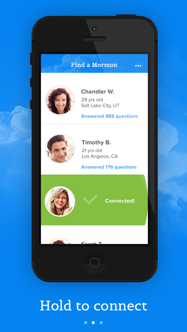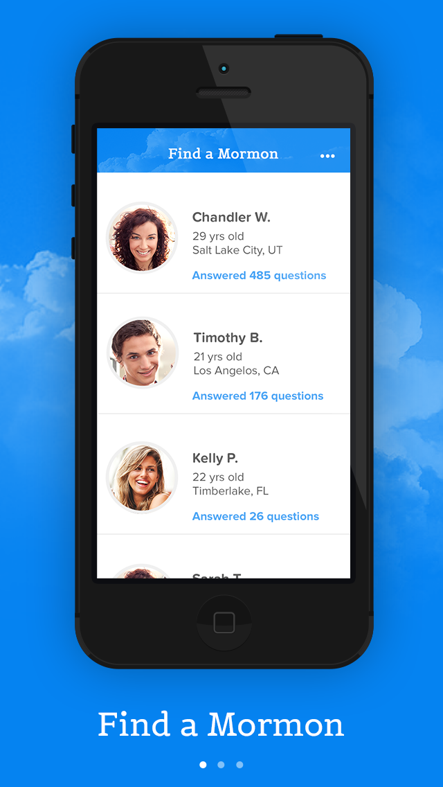 The Ask a Mormon app pairs authorized LDS young single adults with anyone worldwide who wants to ask a question or learn more about the Church of Jesus Christ of Latter-day Saints.